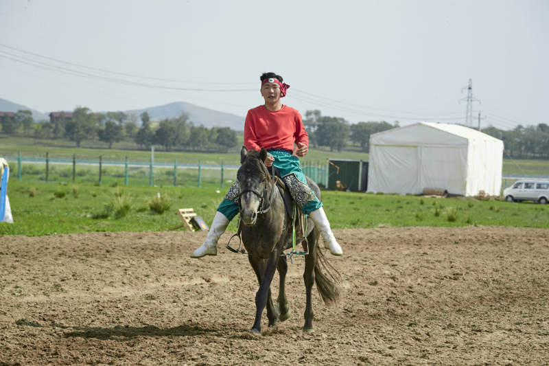 河北省沽源縣庫倫淖爾景區(qū)的蒙古馬術(shù)表演