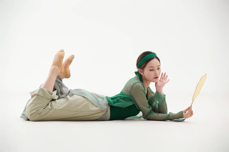 身穿國潮戲曲服飾裝扮手拿花扇的中國美女