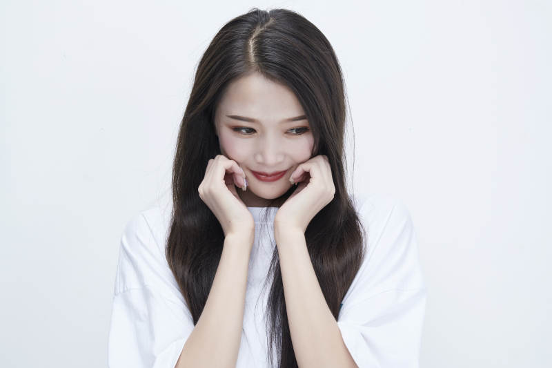 大吃特吃豬蹄塊的亞洲可愛少女人像