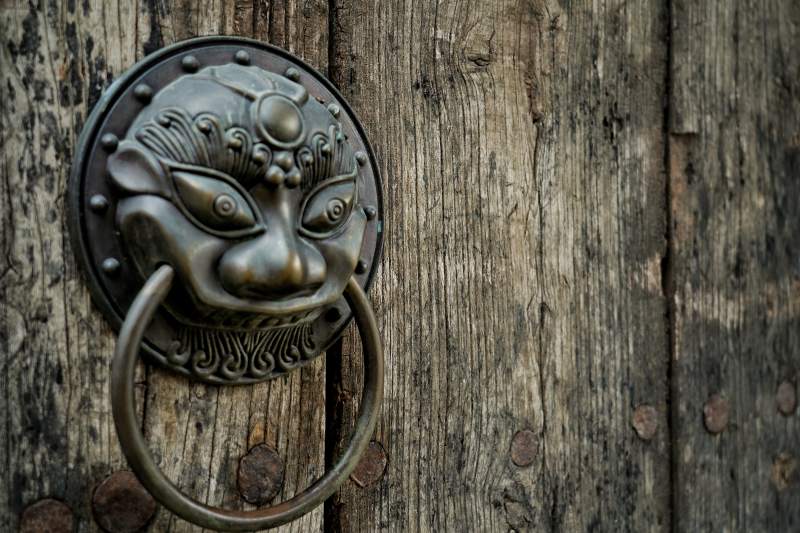 門釘 門環(huán) 紅色大門 古董裝飾 雕刻圖案 金色圓球 粉色背景 陰影效果 裝飾藝術(shù) 傳統(tǒng)工藝
