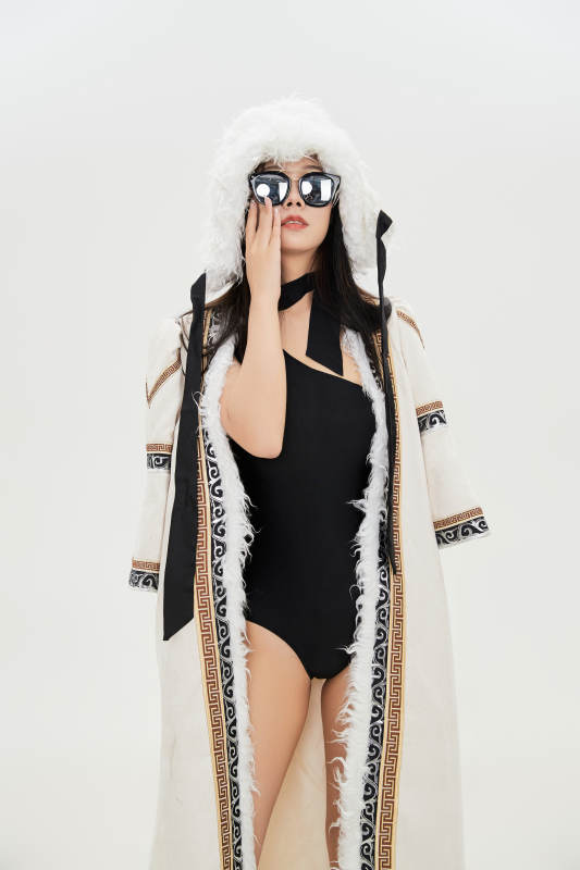身穿混搭風格蒙族服飾的美女