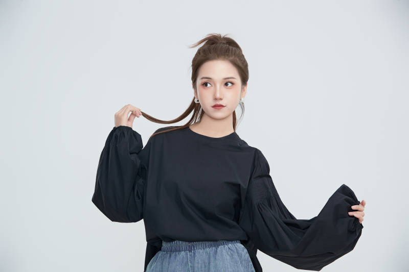 在攝影棚拍攝的青年時(shí)尚女性