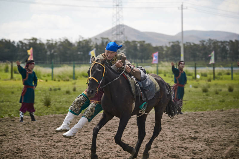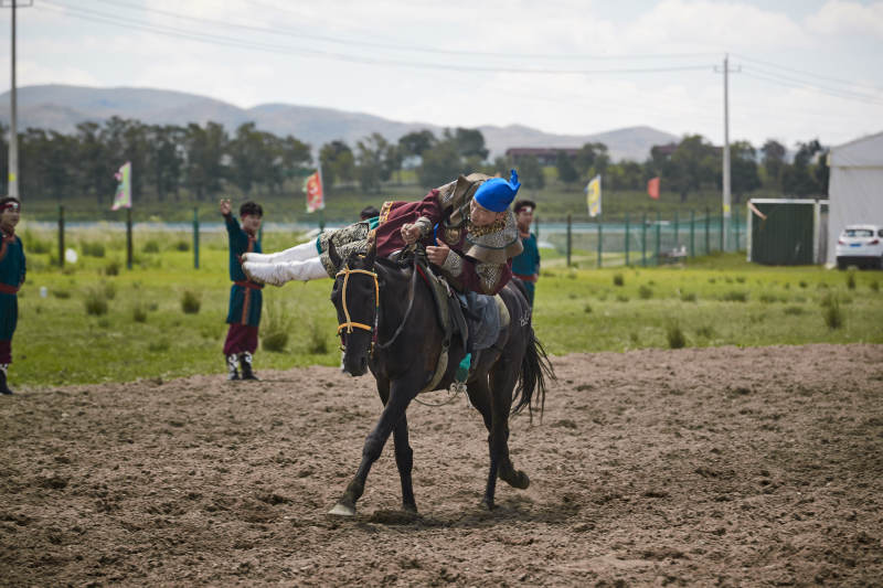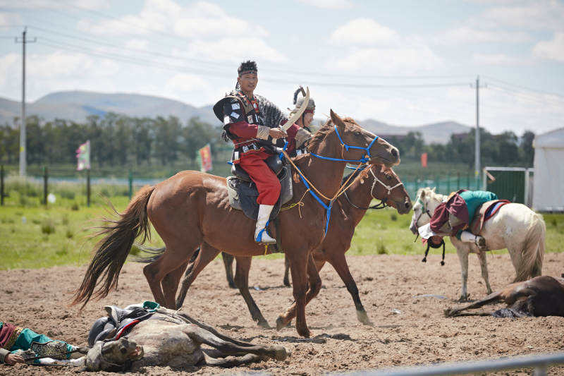 河北省沽源縣庫倫淖爾景區(qū)的蒙古馬術表演
