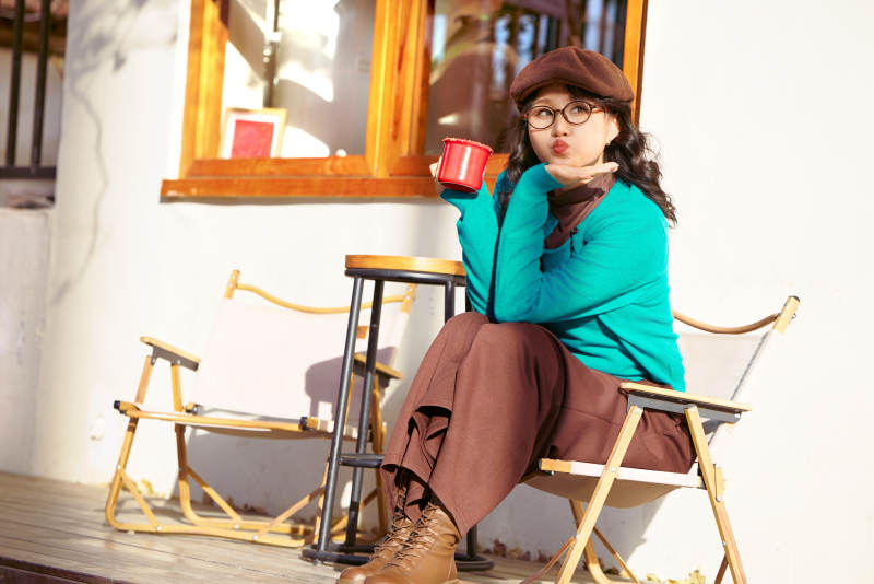 年輕女性 吃飯 筷子 美食 日式料理 藍白格子衫 餐桌 食物 午餐 表情生動