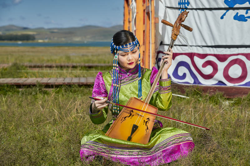那達(dá)慕大會(huì)上的蒙古馬頭琴樂手