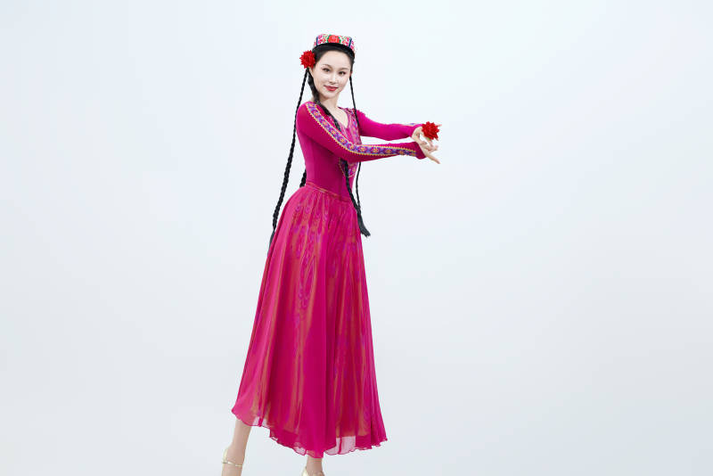 表演中國新疆維吾爾族傳統(tǒng)舞蹈的美麗舞者