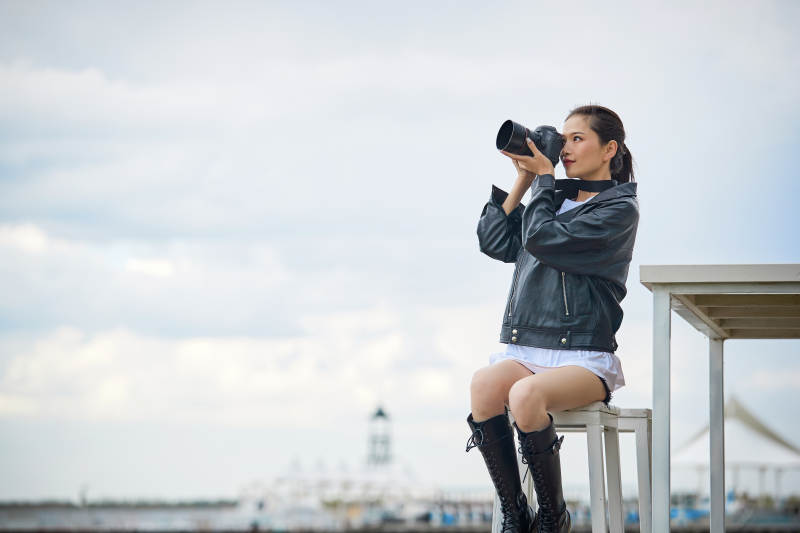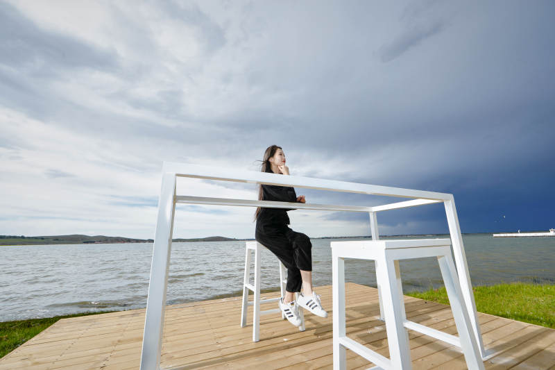 冬季在網紅打卡店探店拍照的東方美女