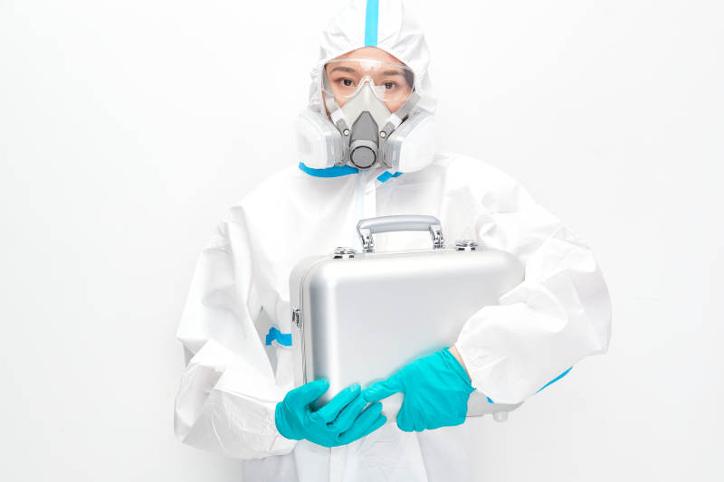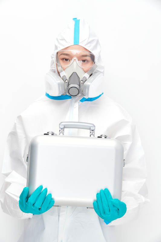 穿白色防護服佩戴護目鏡口罩的女性醫療人員