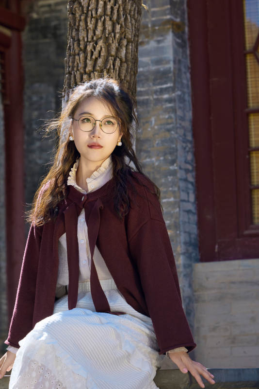 漢服 紅色外套 白色毛領(lǐng) 繡花圖案 雙馬尾辮 毛絨帽子 手勢拍照 傳統(tǒng)服飾 年節(jié)風(fēng)格 女孩