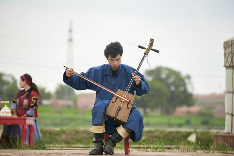 那達慕大會上的蒙古馬頭琴樂手