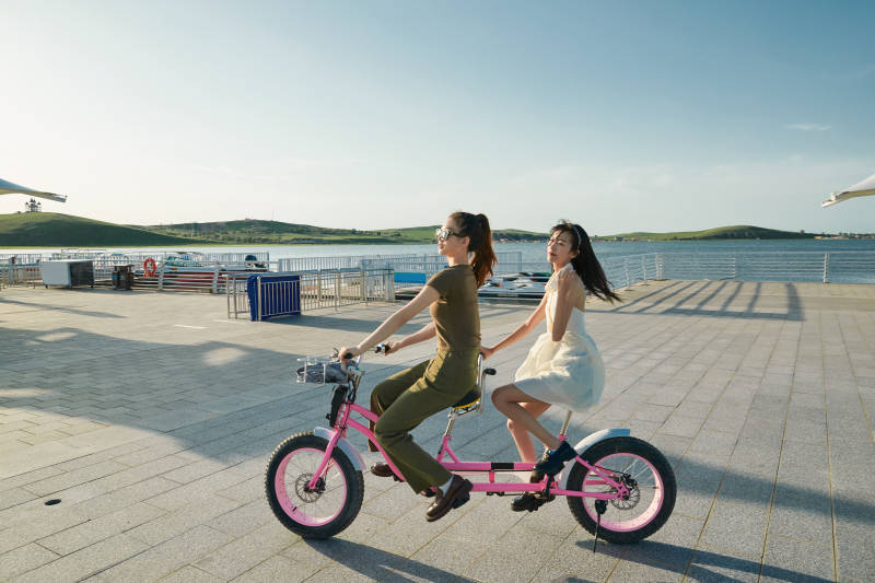 共享單車 橙色 自行車 竹籃 草地 小徑 陽光 戶外 休閑 環(huán)保