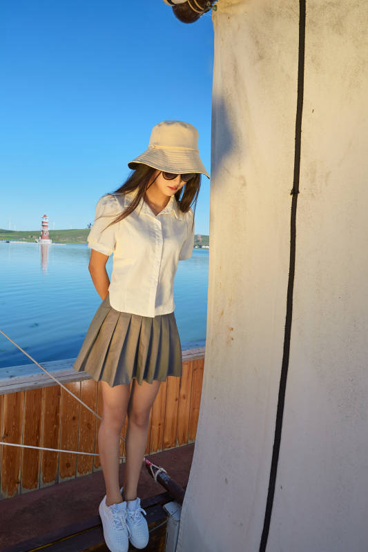 女孩 吊環(huán) 海邊 格子衫 休閑 自然風(fēng)光 晴天 坐姿 長發(fā) 戶外