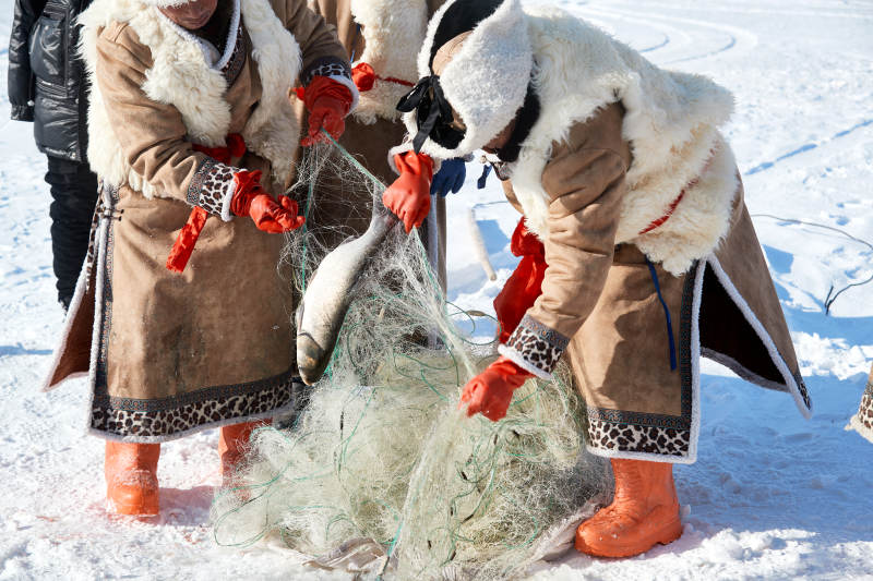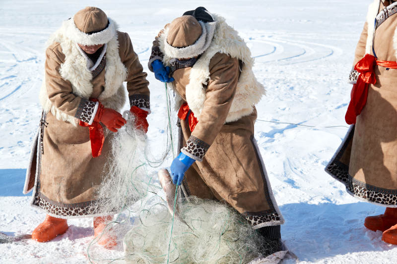 草原上蒙古包前穿蒙古族傳統服飾的年輕夫妻
