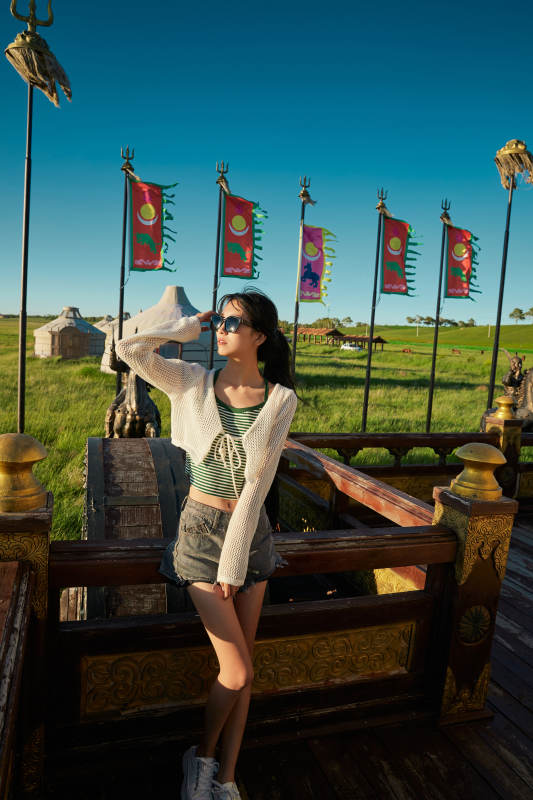 老舊城區里穿著復古港風的美麗清純少女