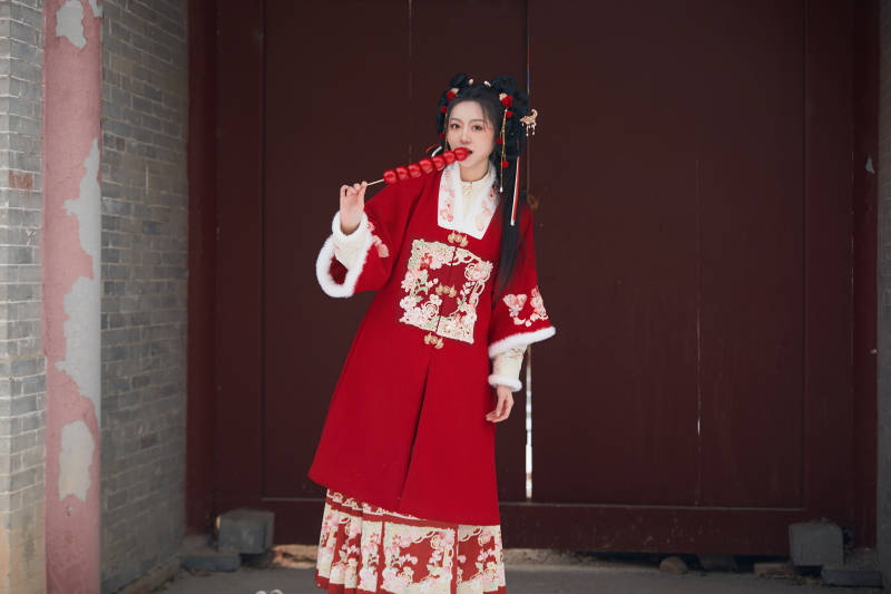 懷抱爆竹身穿喜慶漢服的可愛少女