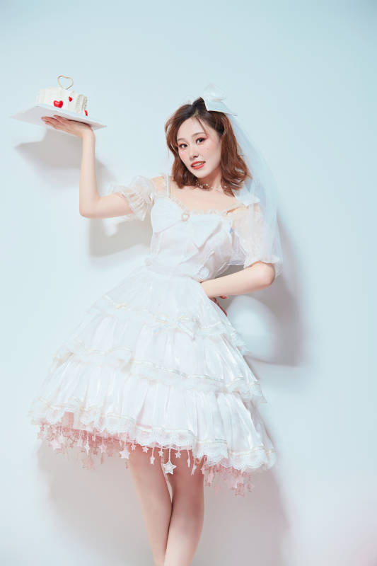 穿著糖果洛麗塔服裝慶祝生日的亞洲少女