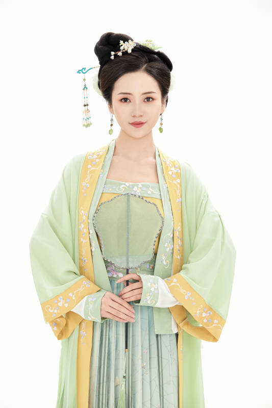 古裝 傳統(tǒng)服飾 紫色長袍 花紋刺繡 發(fā)飾 長發(fā) 中國風(fēng) 女性 優(yōu)雅 漢服 清代風(fēng)格 黑色背景 手持白巾 傳統(tǒng)妝容