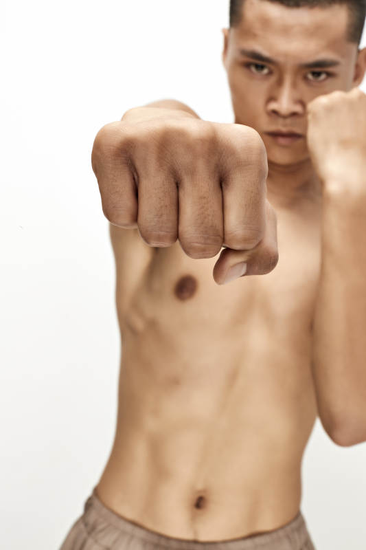 白色背景下健碩的亞洲羽毛球運(yùn)動(dòng)員形象