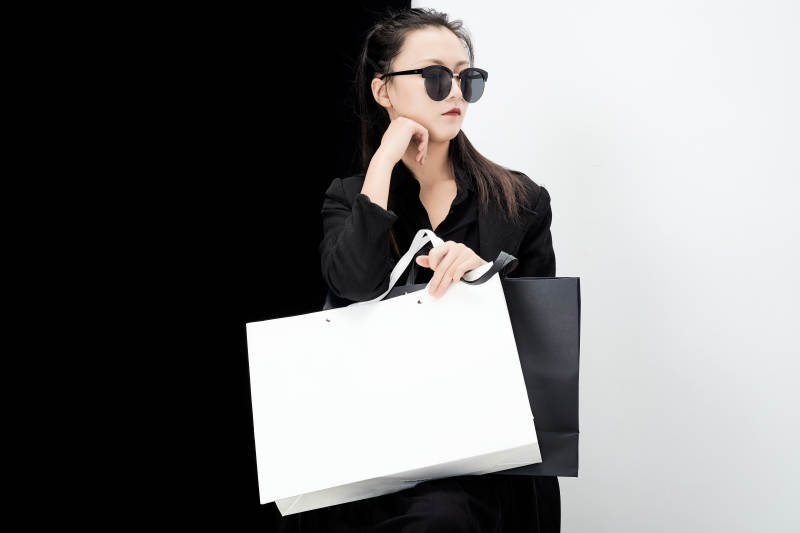 白色背景下手提購物袋時尚美麗的亞洲少女