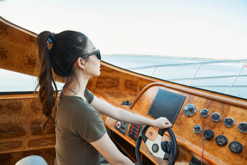 孤船航行在蔚藍大海