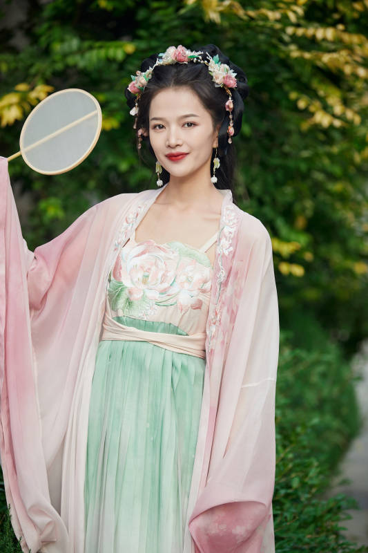 黃色背景下穿著歐式宮廷晚裝慶祝生日的少女