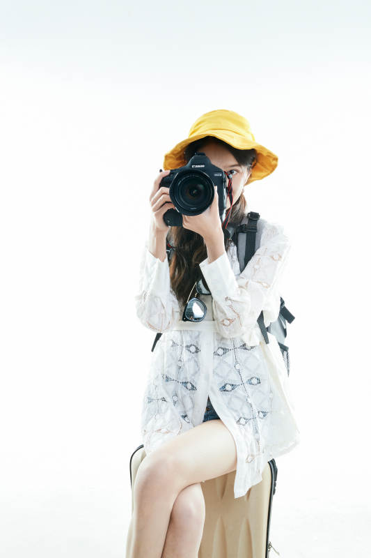 女士 帽子 太陽鏡 連衣裙 花卉圖案 旅行箱 白色背景 時(shí)尚 夏季穿搭 休閑風(fēng)格