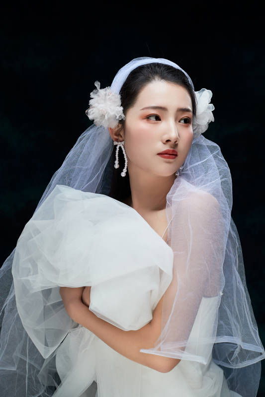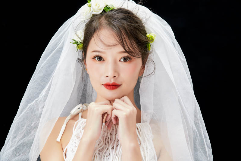 棚拍白色背景下的新娘美妝