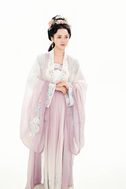古裝 傳統(tǒng)服飾 漢服 女孩 母女 花紋刺繡 紫色長袍 藍色裙擺 頭飾 花朵發(fā)飾 黑色背景 互動 溫馨 傳統(tǒng)文化 中國風(fēng)