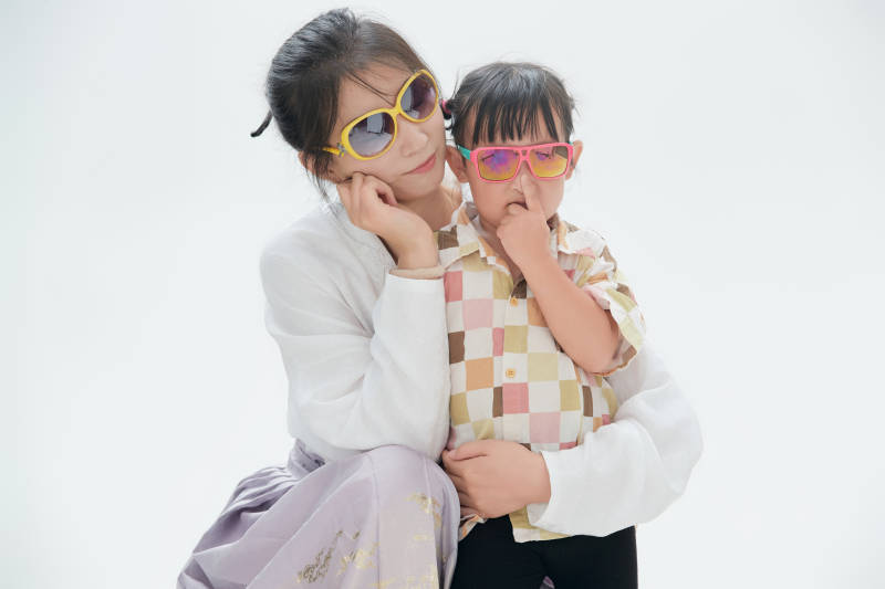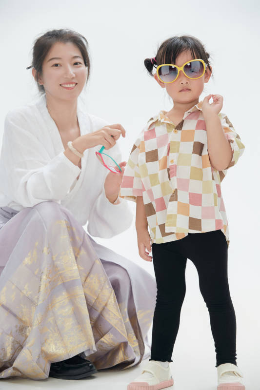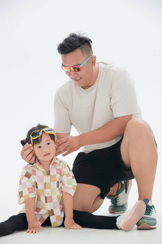 白色背景下的媽媽與可愛女兒親子人像