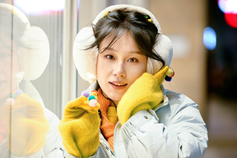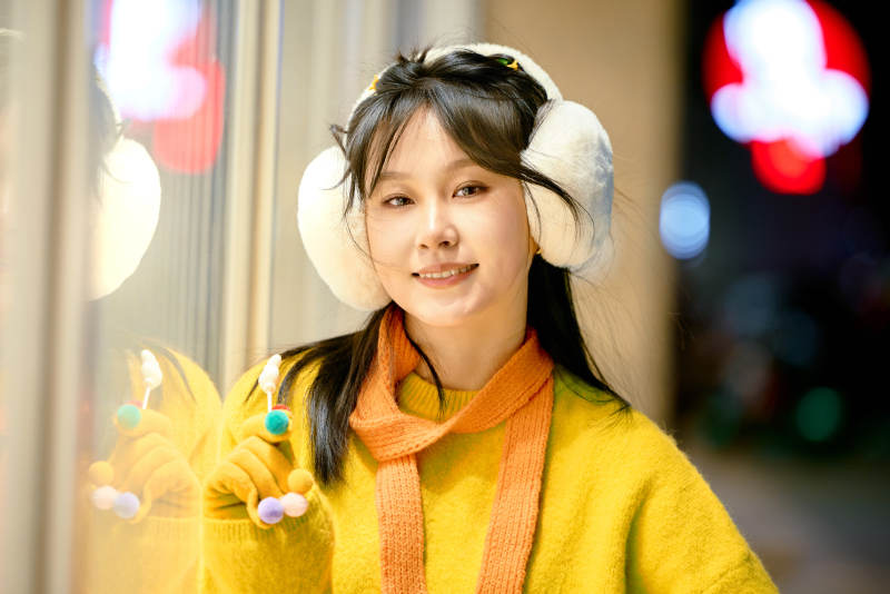 年輕女性 穿格子連衣裙 使用筷子 吃飯 餐桌 美食 韓式料理 蔬菜 海鮮 桌上擺盤 藍色背景 木椅 清新風格