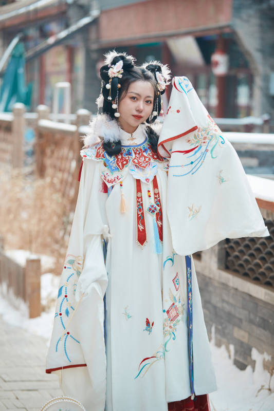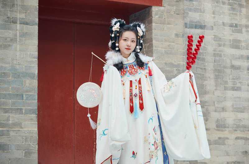草原上穿著蒙古族傳統(tǒng)服飾的亞洲年輕美少女