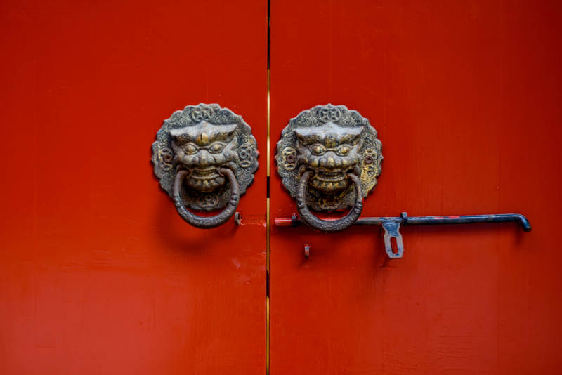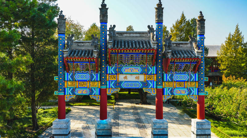傳統(tǒng)建筑 中國風格 飛檐翹角 紅燈籠 白墻灰瓦 佛塔 藍天 門樓 石獅 庭院