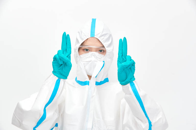 穿白色防護服佩戴護目鏡口罩的女性防護人員