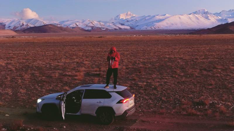雪山下的孤獨旅人