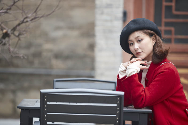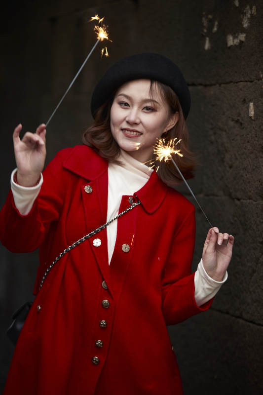 頭戴皮草帽穿著歐式宮廷晚裝慶祝生日的少女