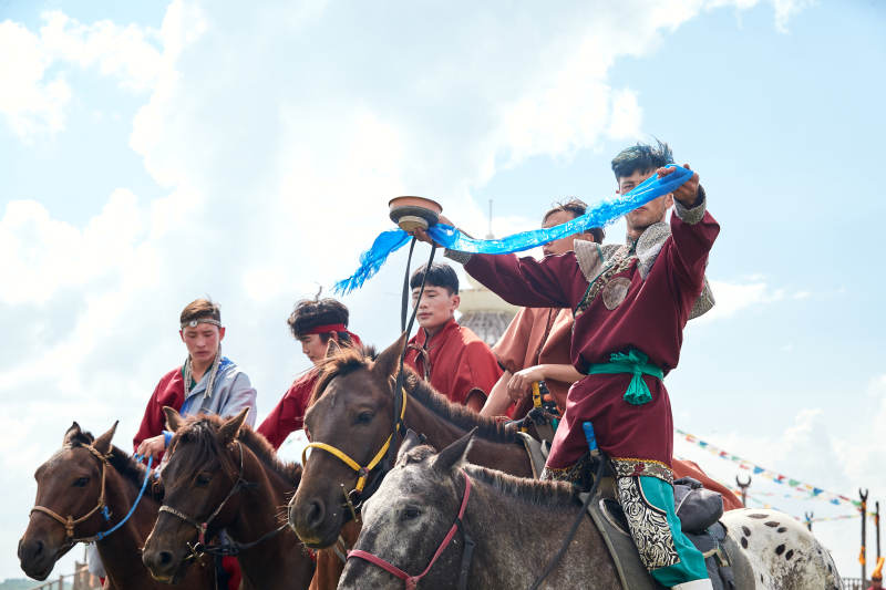 身穿蒙古族喀爾喀部落傳統(tǒng)服飾的蒙族姑娘