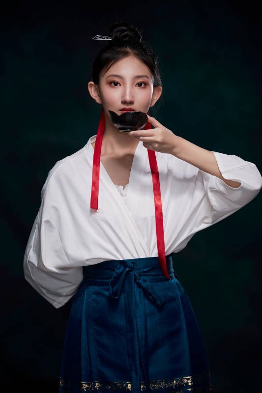 草原上敖包前身穿豪華蒙古族服飾的蒙族少女