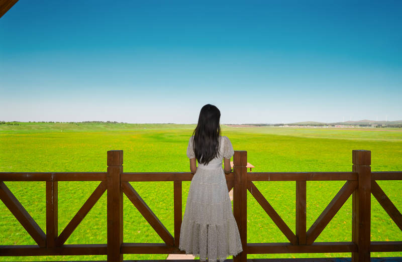 大象雕塑 金色雕像 女孩 戴墨鏡 白色背心 牛仔短褲 草地 藍天 戶外 雕塑藝術(shù) 自然風光