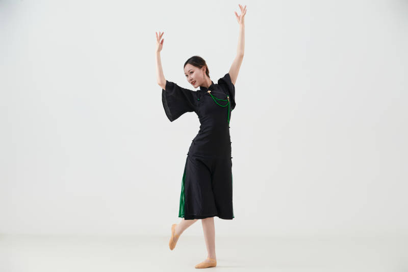 穿著中式旗袍翩翩舞蹈的亞洲少女舞者