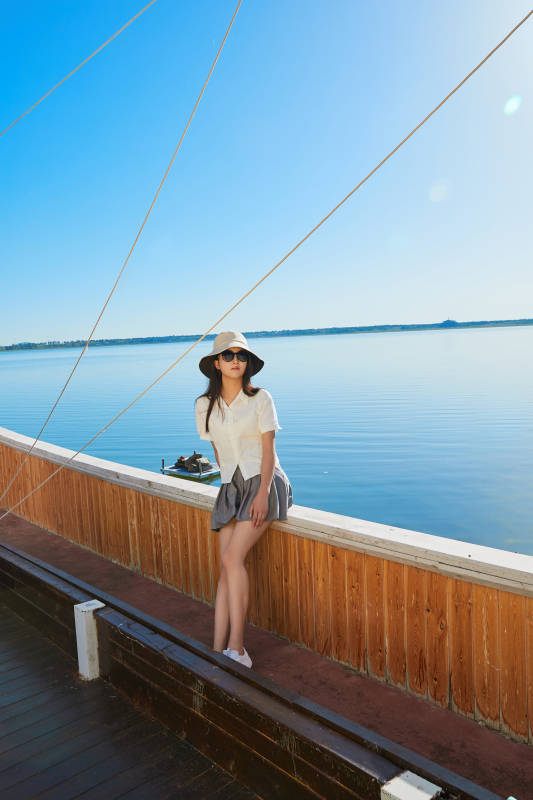 月亮 夜景 湖水 城市天際線 傳統(tǒng)建筑 現(xiàn)代高樓 樹木 倒影 紫色天空