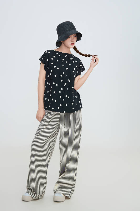 中式風(fēng)格 女裝 長袖上衣 淺色系 粉色袖口 寬松設(shè)計(jì) 黑色印花褲 優(yōu)雅氣質(zhì) 時(shí)尚穿搭 漢元素服飾