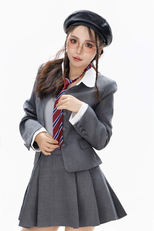 影棚拍攝身穿制服裝扮時尚的亞洲美女