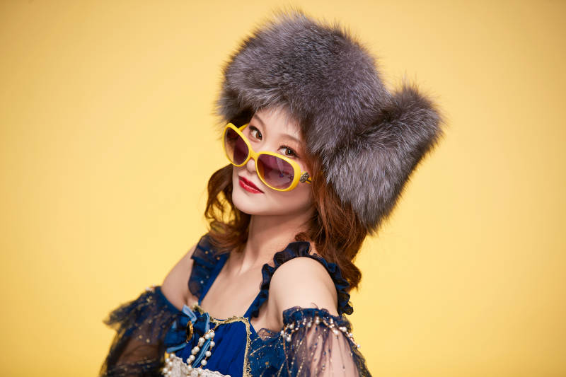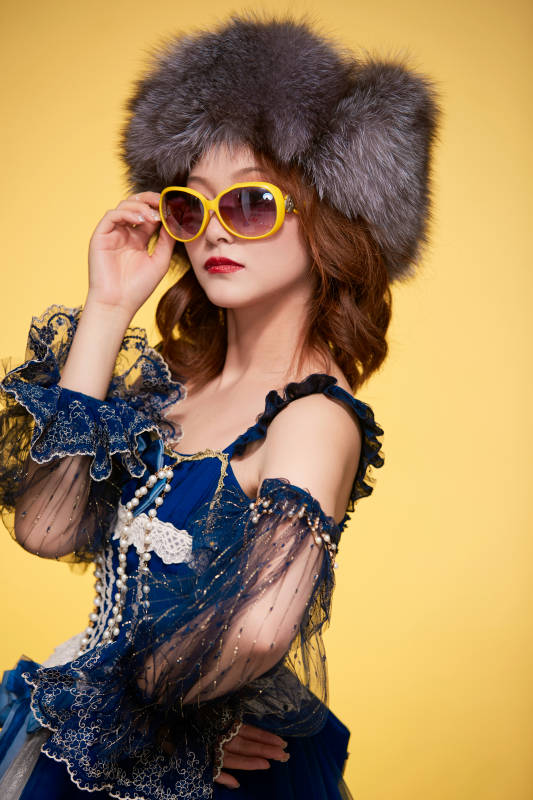頭戴皮草帽穿著歐式宮廷晚裝慶祝生日的少女