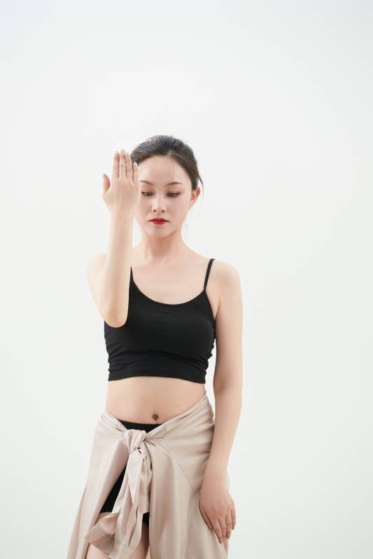 穿著白色旗袍頭戴絹花的跳古典舞的少女