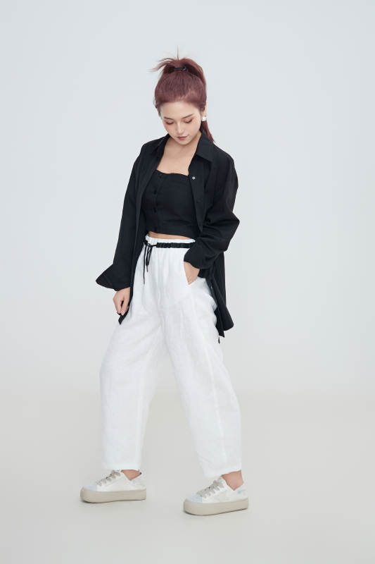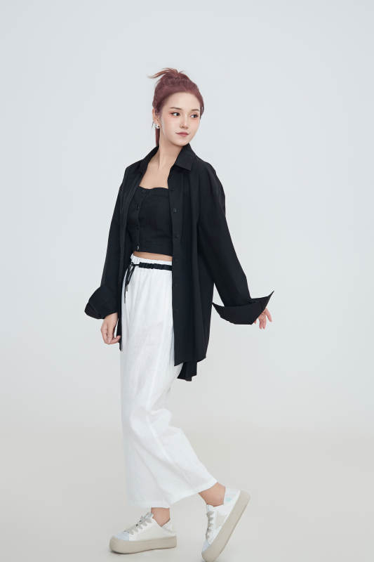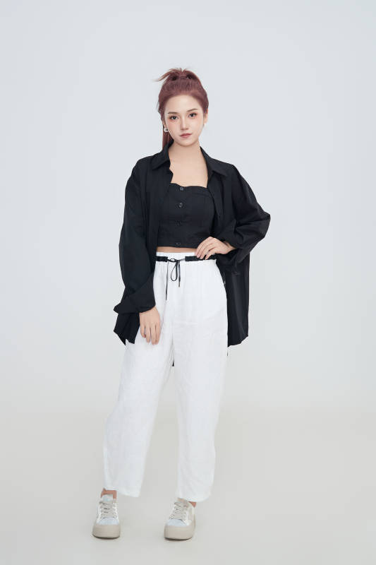在攝影棚拍攝的青年時尚女性
