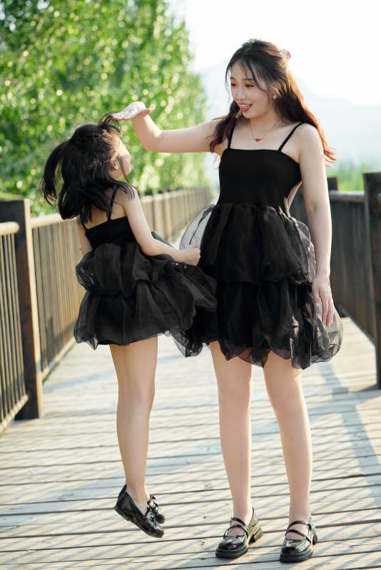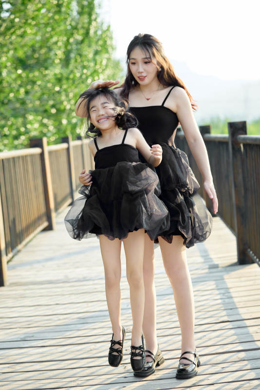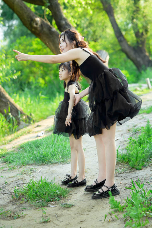 夏天在戶外公園旅行游玩的亞洲母女親子