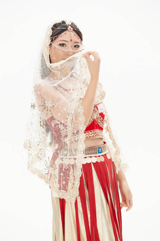穿白色長(zhǎng)T血襯展示各種表情的長(zhǎng)發(fā)少女人像