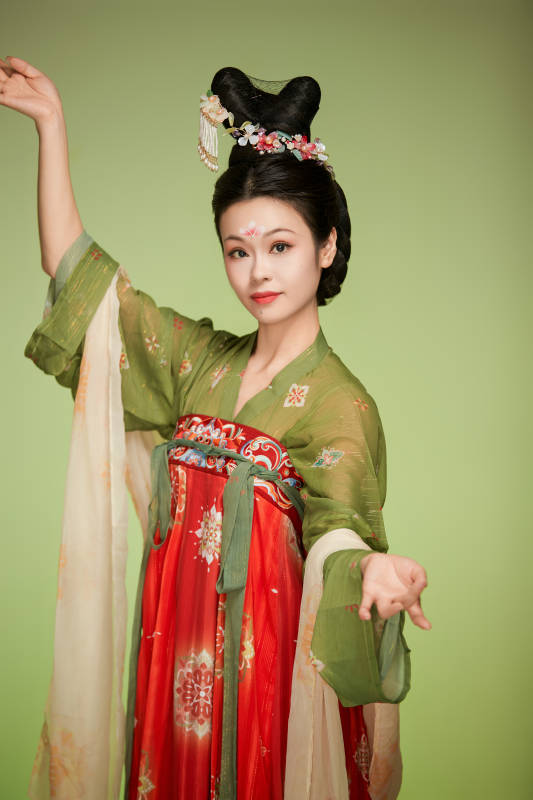 穿著中式旗袍翩翩舞蹈的亞洲少女舞者