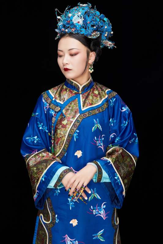 展示中國清朝宮廷服飾的亞洲女性