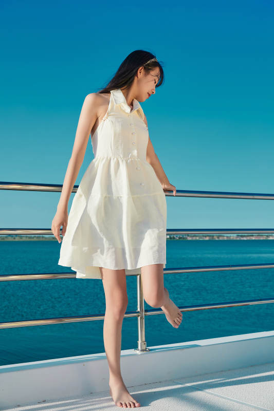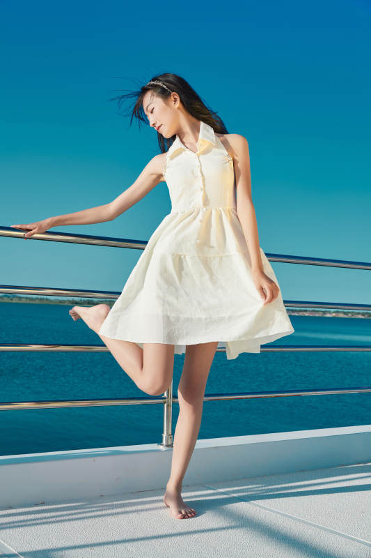 夏日在游艇觀光平臺上的亞洲少女